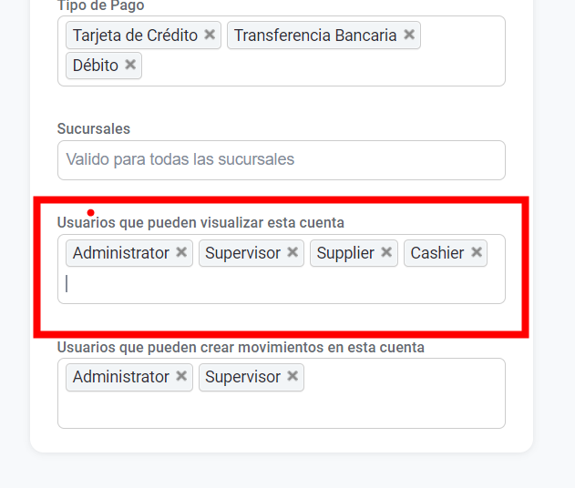 - Dentro da conta, você verá primeiro a opção "Usuários que podem visualizar esta conta". Nesse caso, você listará todos os usuários que acessam o sistema e aos quais você deseja conceder permissão para VISUALIZAR esta conta, mas que não podem modificá-la ou realizar transações dentro dela: