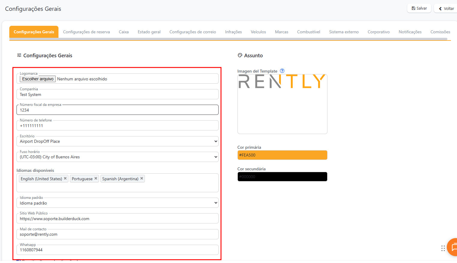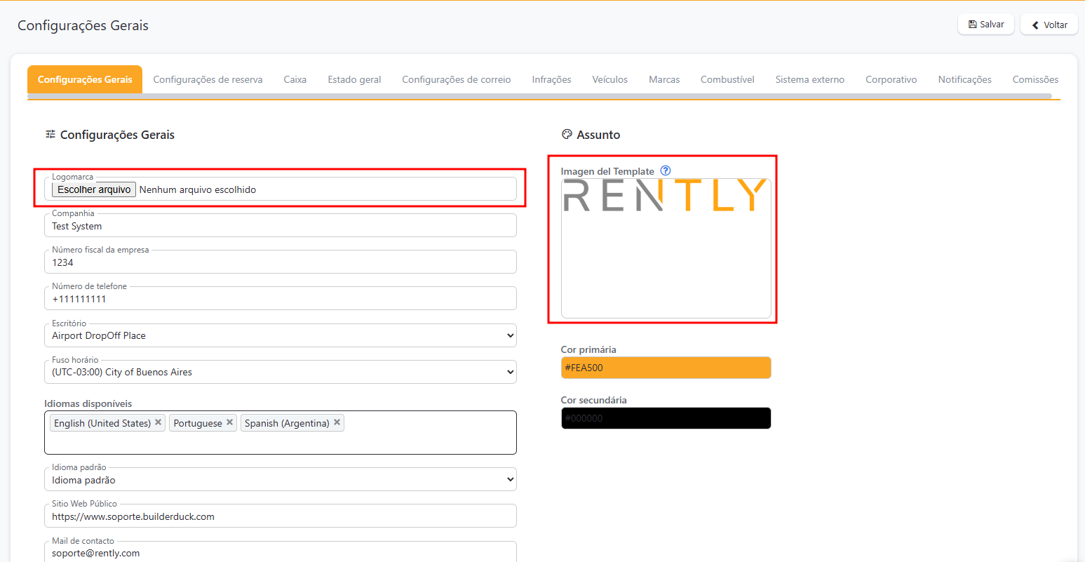 Configuração geral | Centro de Ajuda Rently