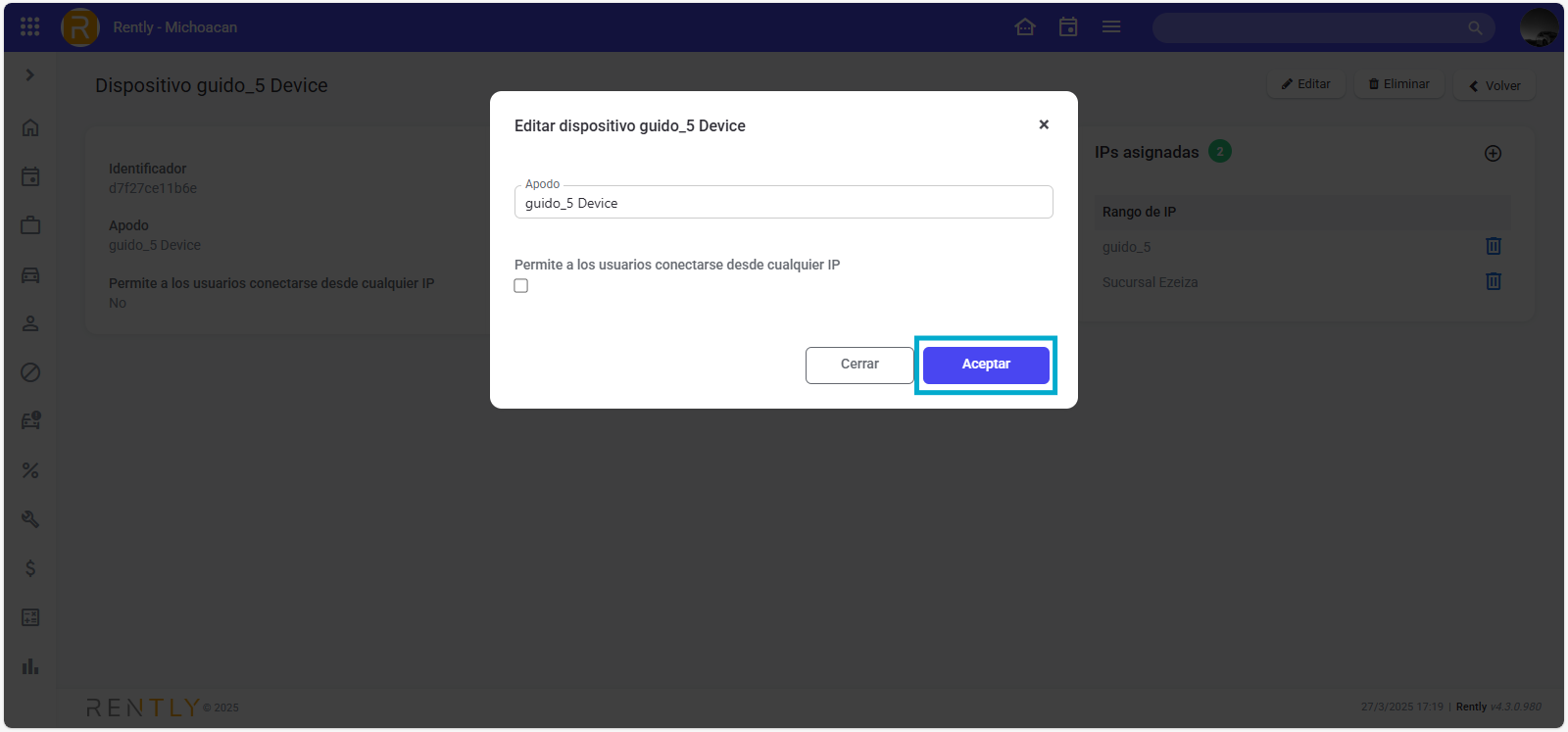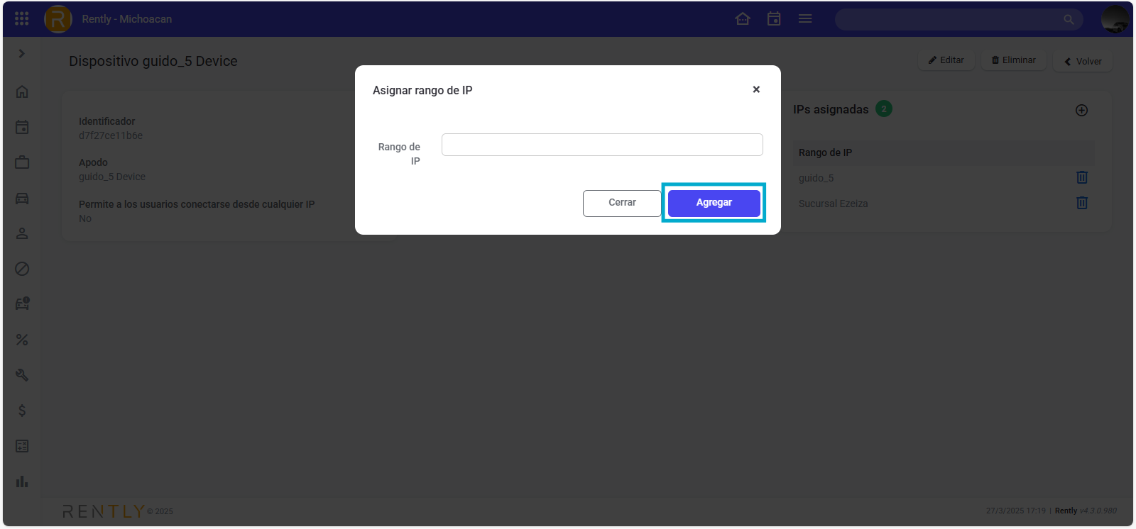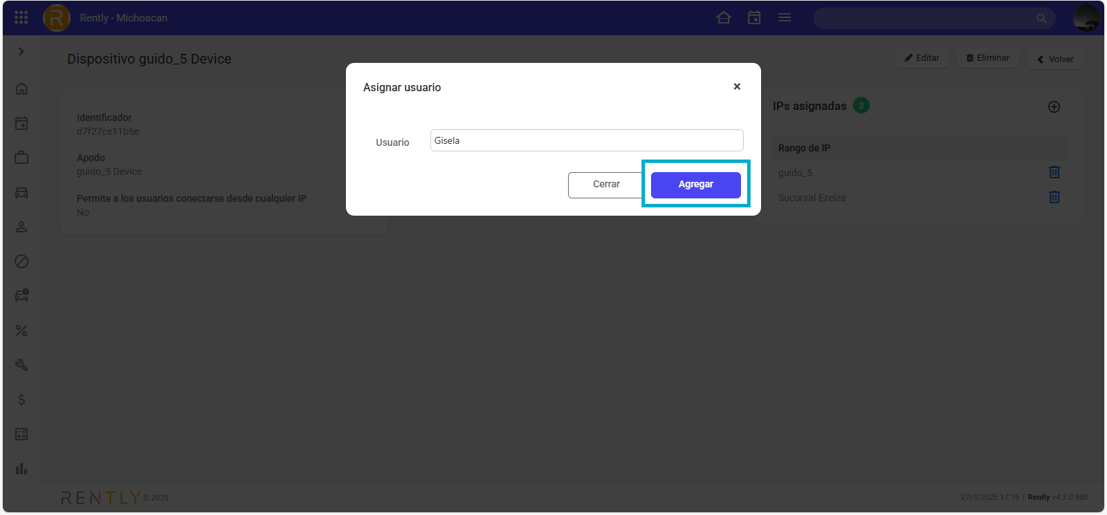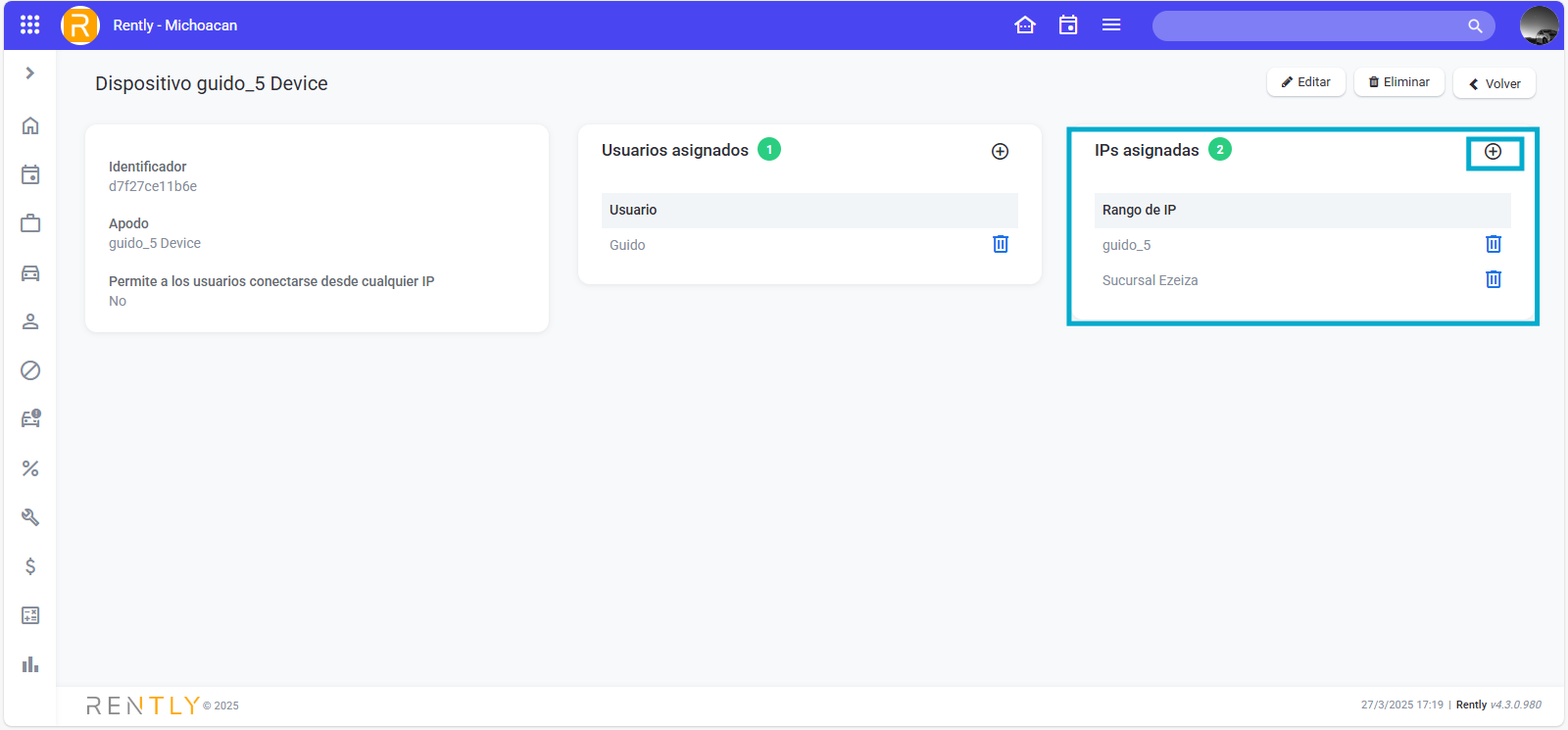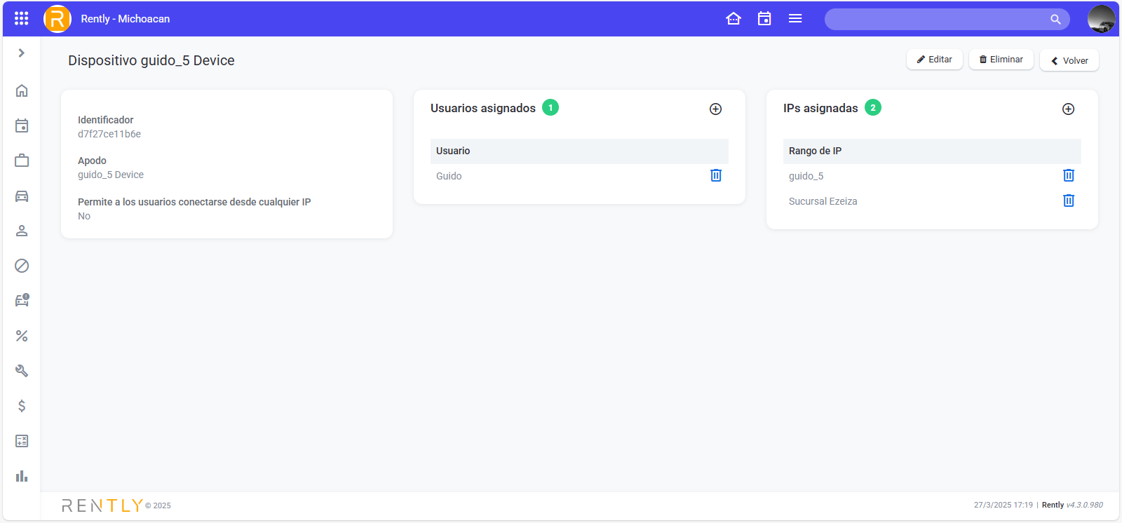 Gerencie o acesso ao Rently por dispositivo, atribua-o a um usuário e vincule-o a IPs atribuídos.