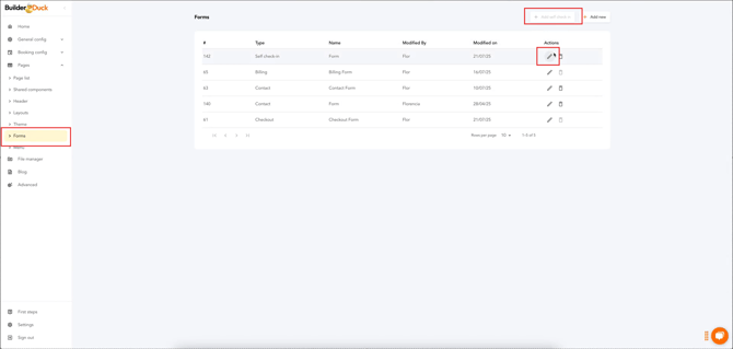 Para configurar o formulário de auto check-in, acesse Páginas e selecione Formulários. Nessa página, clique no botão Auto check-in. Em seguida, clique no ícone de edição.