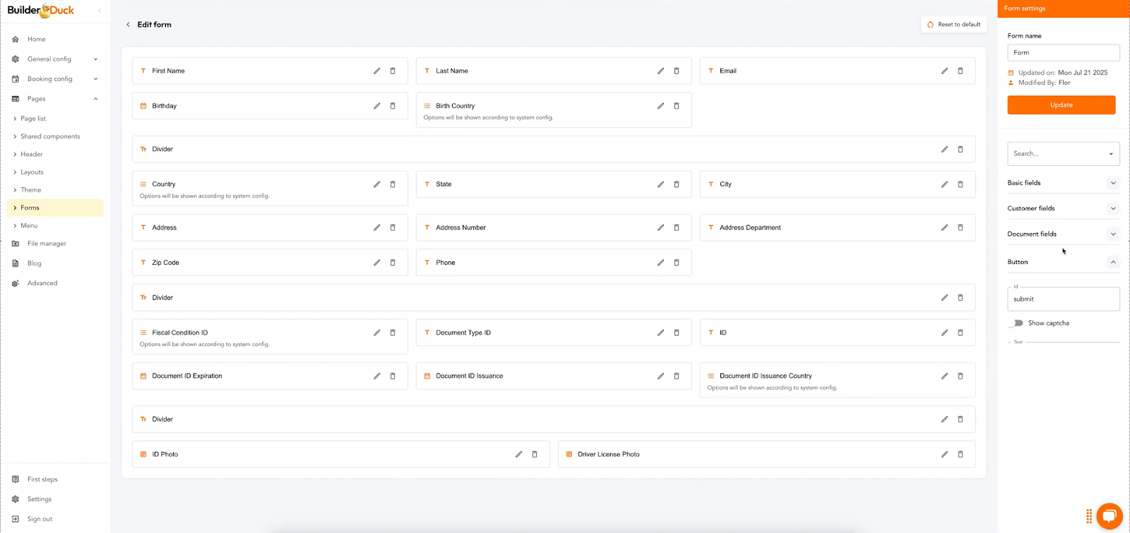Lá você verá o formulário pré-configurado, mas poderá personalizá-lo adicionando ou removendo campos, bem como selecionando-os como campos obrigatórios.