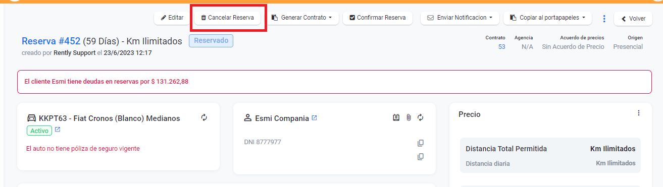 Motivos para cancelamento de reservas | Centro de Ajuda Rently