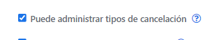 Para personalizar os tipos de cancelamento, devemos certificar-nos de que a permissão está ativada: