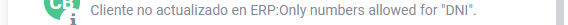 “Cliente não atualizado no ERP: somente números permitidos para “DNI”.”