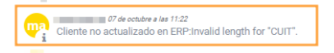 - Caso encontre a mensagem no histórico do cliente “Cliente não atualizado no ERP: comprimento inválido para “CUIT”.