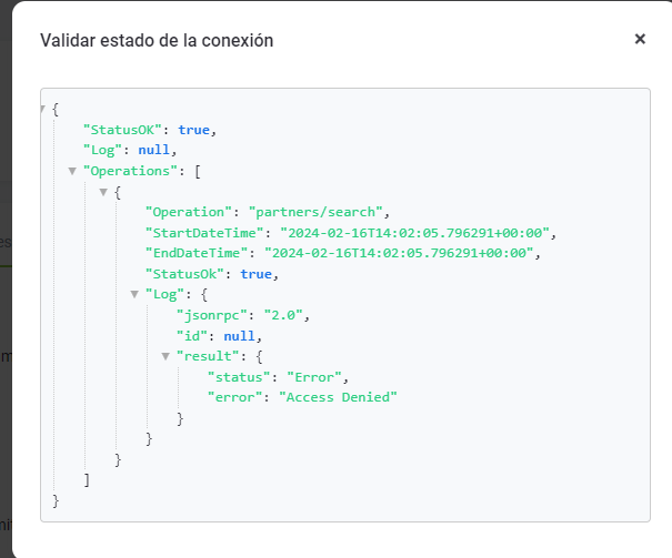 "Log : {"jsonrpc": "2.0", "id": null, "result": {"status": "Error", "error": "Access Denied"}}"