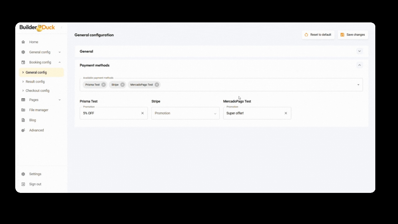 Para criar uma promoção, acesse Configurações de reserva na barra lateral e selecione Configurações gerais.
