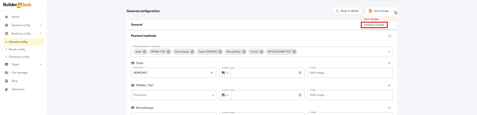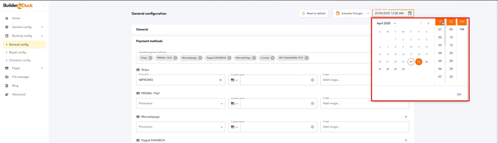 Com o BuilderDuck, você pode agendar promoções para serem acionadas na data escolhida.