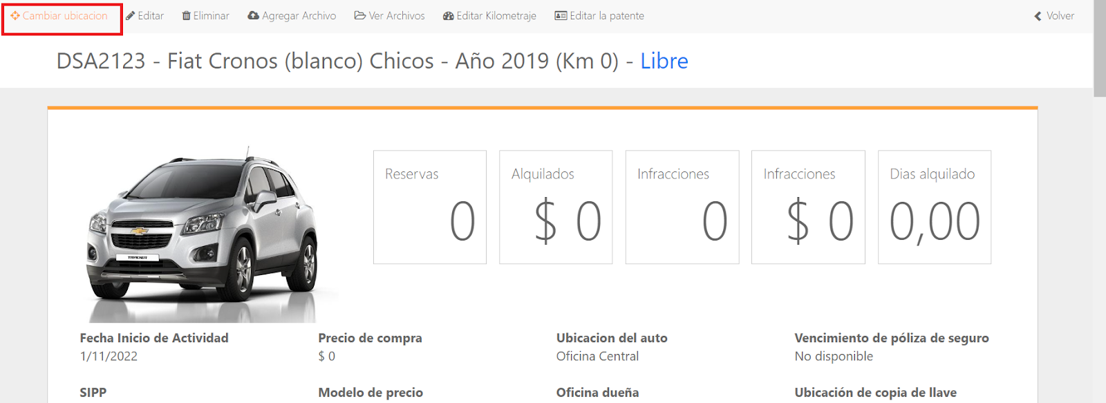 - Selecione o carro que deseja realocar: