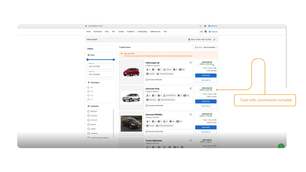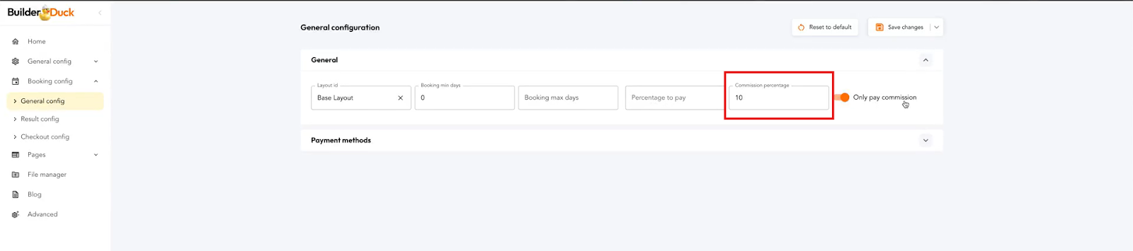 Com o BuilderDuck, você pode configurar o preço da reserva para incluir uma porcentagem de comissão. O usuário não verá os detalhes dessa comissão.