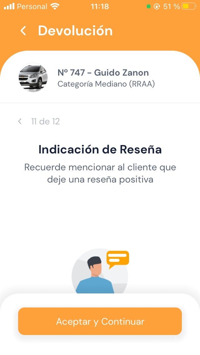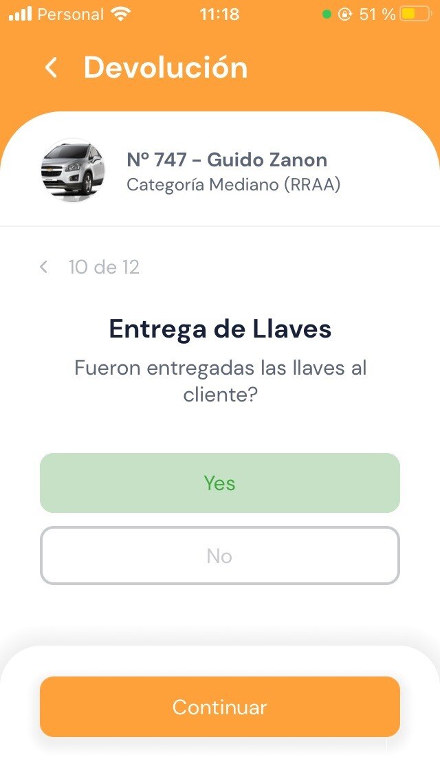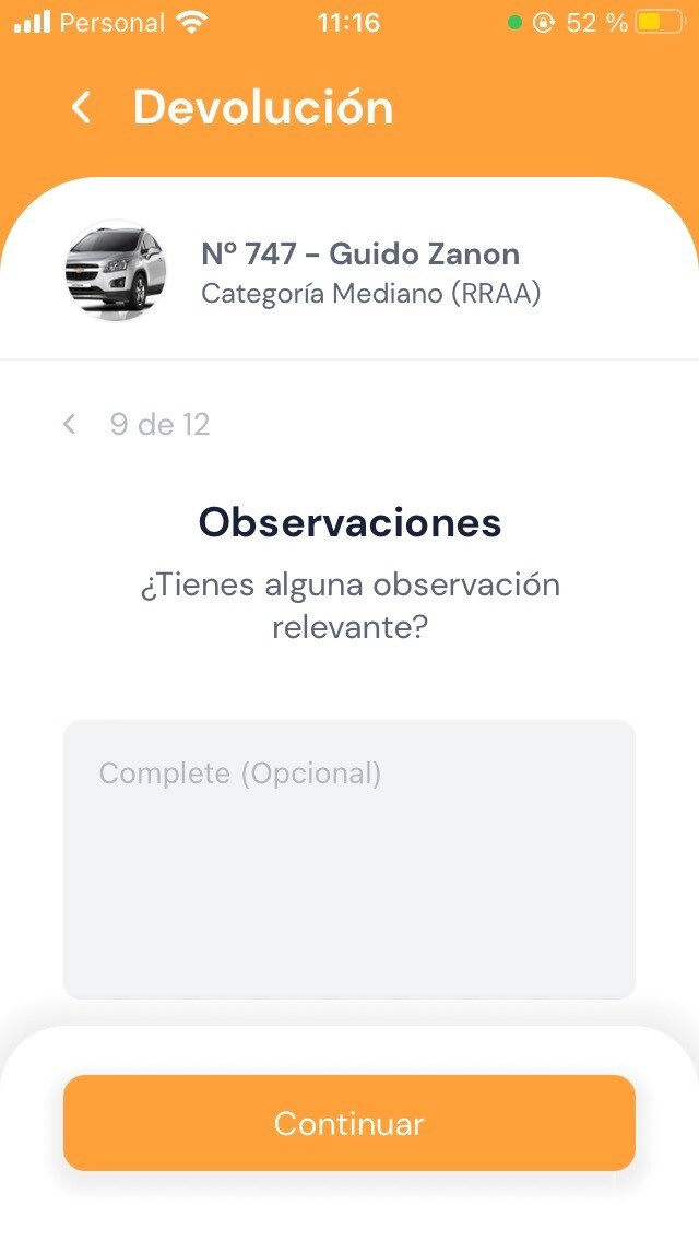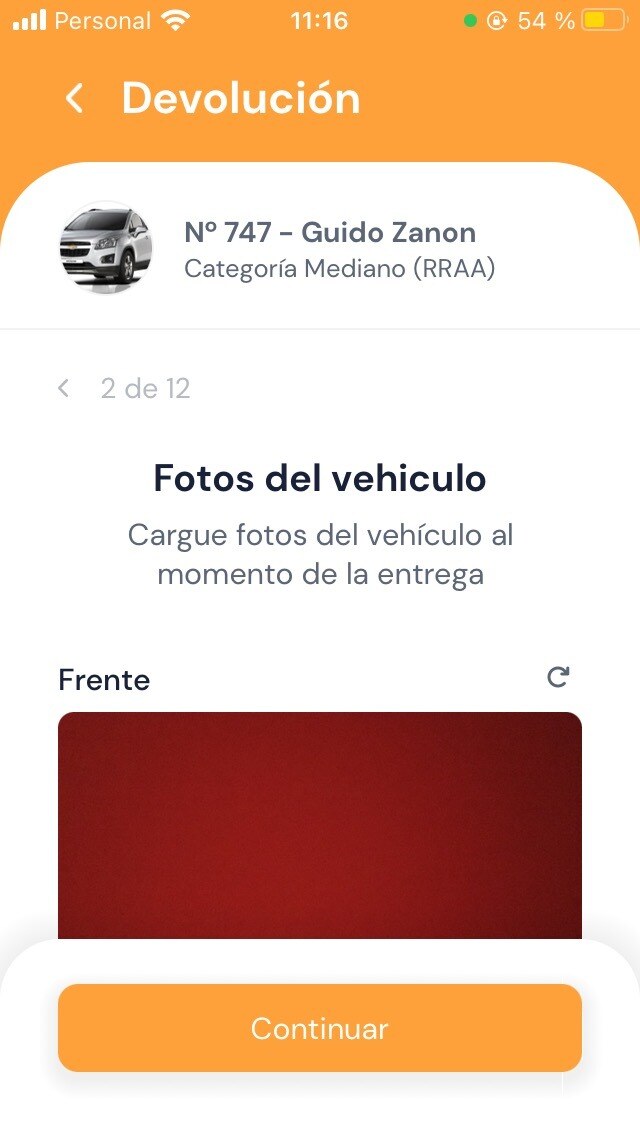 Esta etapa permite revisar as fotos tiradas durante a entrega do veículo para verificar sua condição e quaisquer danos existentes.