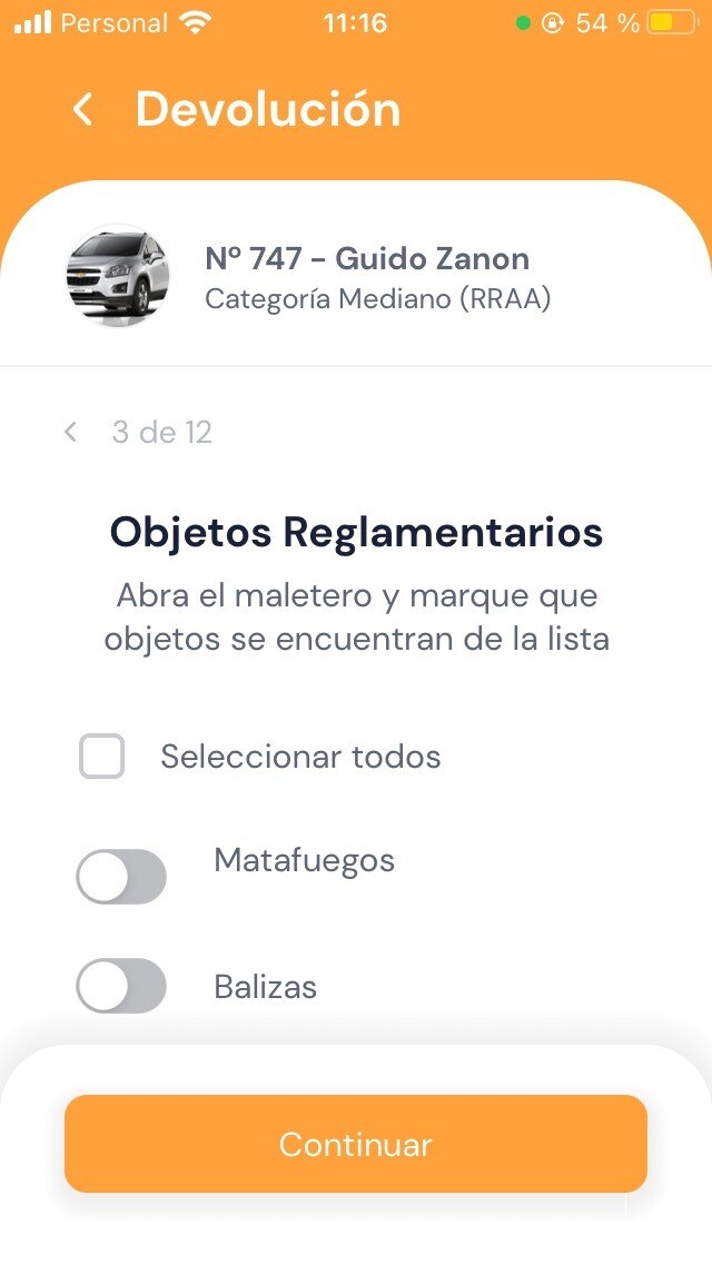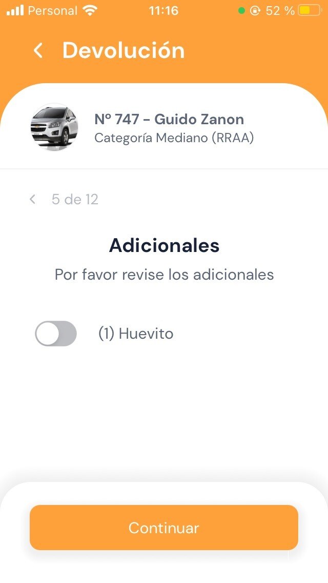 Esta etapa é usada para revisar e registrar quaisquer itens adicionais adicionados à reserva do veículo durante o processo de verificação. As configurações incluem a definição dos itens adicionais disponíveis e a opção de registrar sua inclusão ou exclusão durante a inspeção do veículo.