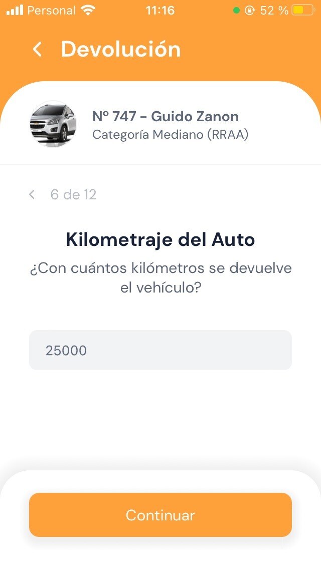 Esta etapa fornece informações específicas sobre a quilometragem do veículo no momento da entrega ou devolução.