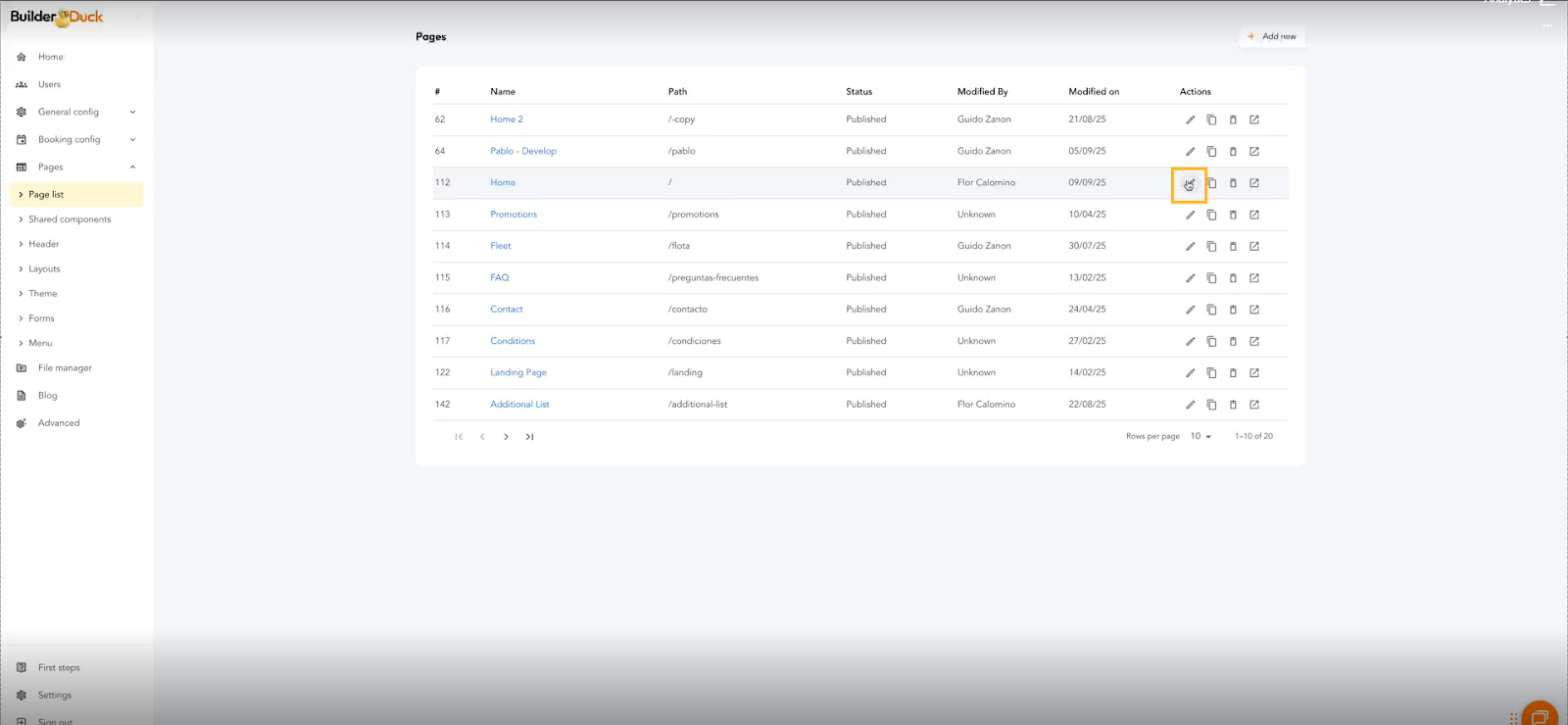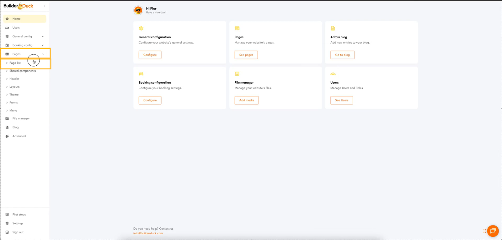 Para traduzir uma página no BuilderDuck, acesse Páginas e selecione Lista de Páginas.