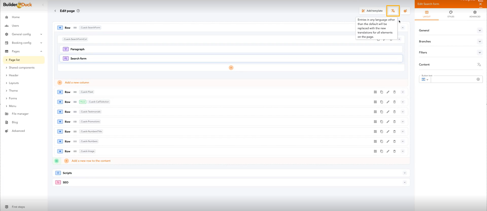 Com o BuilderDuck, você pode traduzir o conteúdo da sua página com apenas um clique.