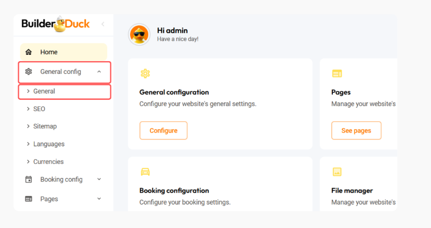 Para comenzar, ve a General en la barra lateral y selecciona Configuraciones Generales.