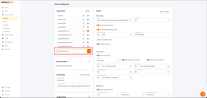 Allí, verás los dominios permitidos (en un principio serán los dominios de Builderduck).