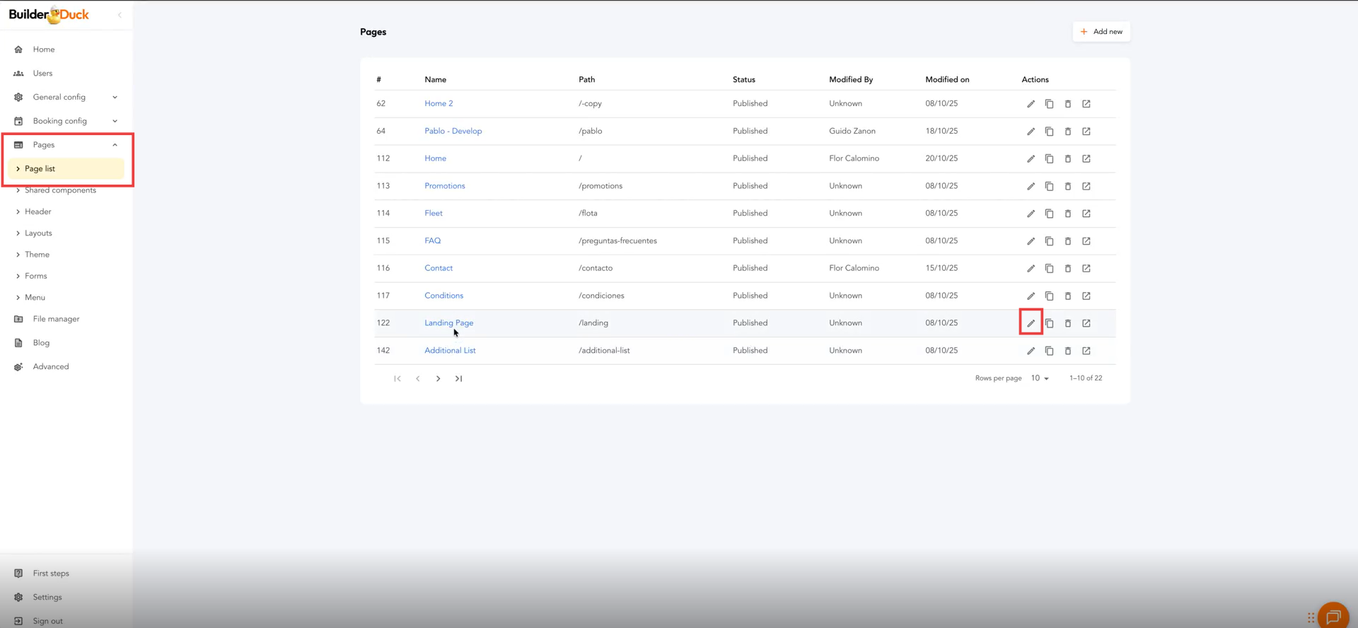 Para vincular las landings de cada sucursal dentro de la página de sucursales, ve a Páginas y selecciona Lista de Páginas.