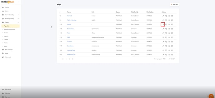 Selecciona la página a la que quieras sumarle las métricas y presiona el ícono de edición.