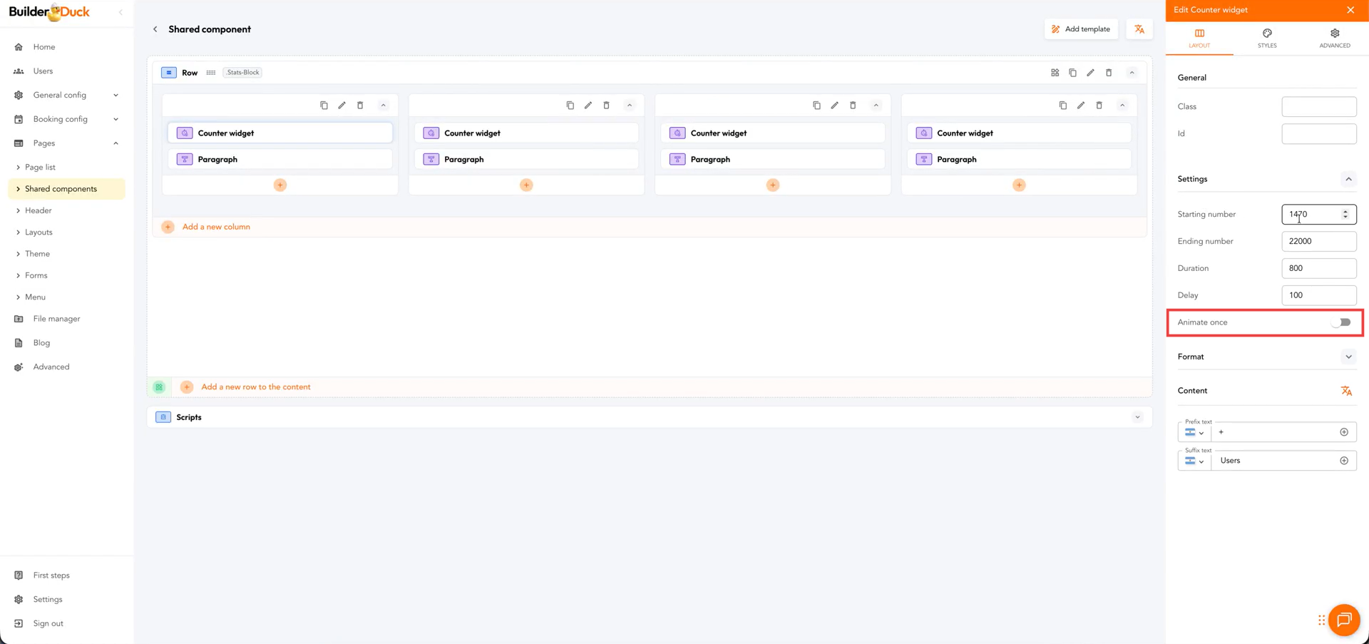 Con BuilderDuck puedes sumar métricas a tu sitio web y animarlas para hacerlas más atractivas.