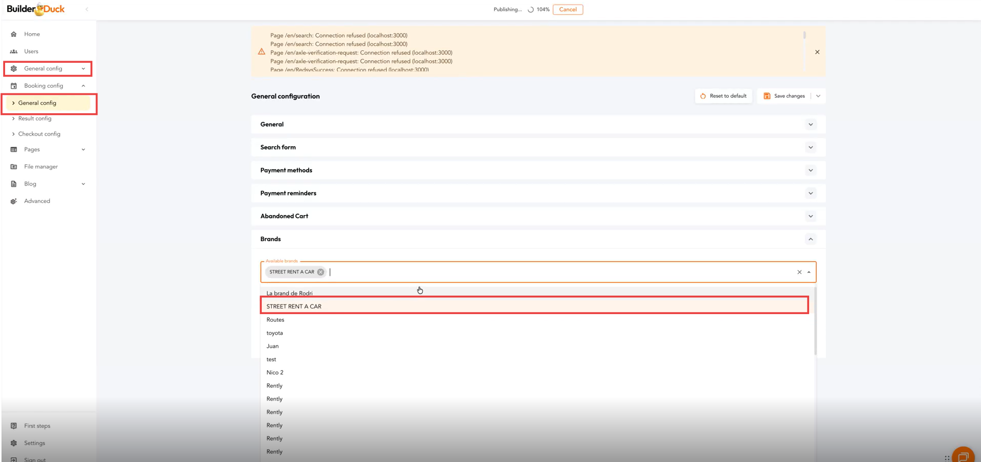Para sumar más de una marca a las reservas de tu página, ve a Configuración de Reservas y selecciona Configuración general.