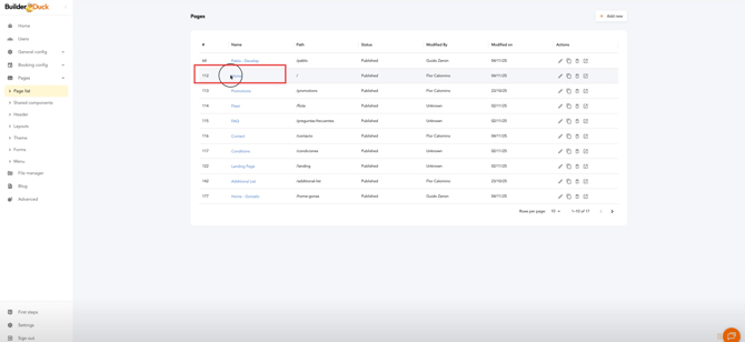 Verás el listado de páginas que componen tu sitio web. Ingresa en la que quieras ver el historial de cambios presionando en su nombre.