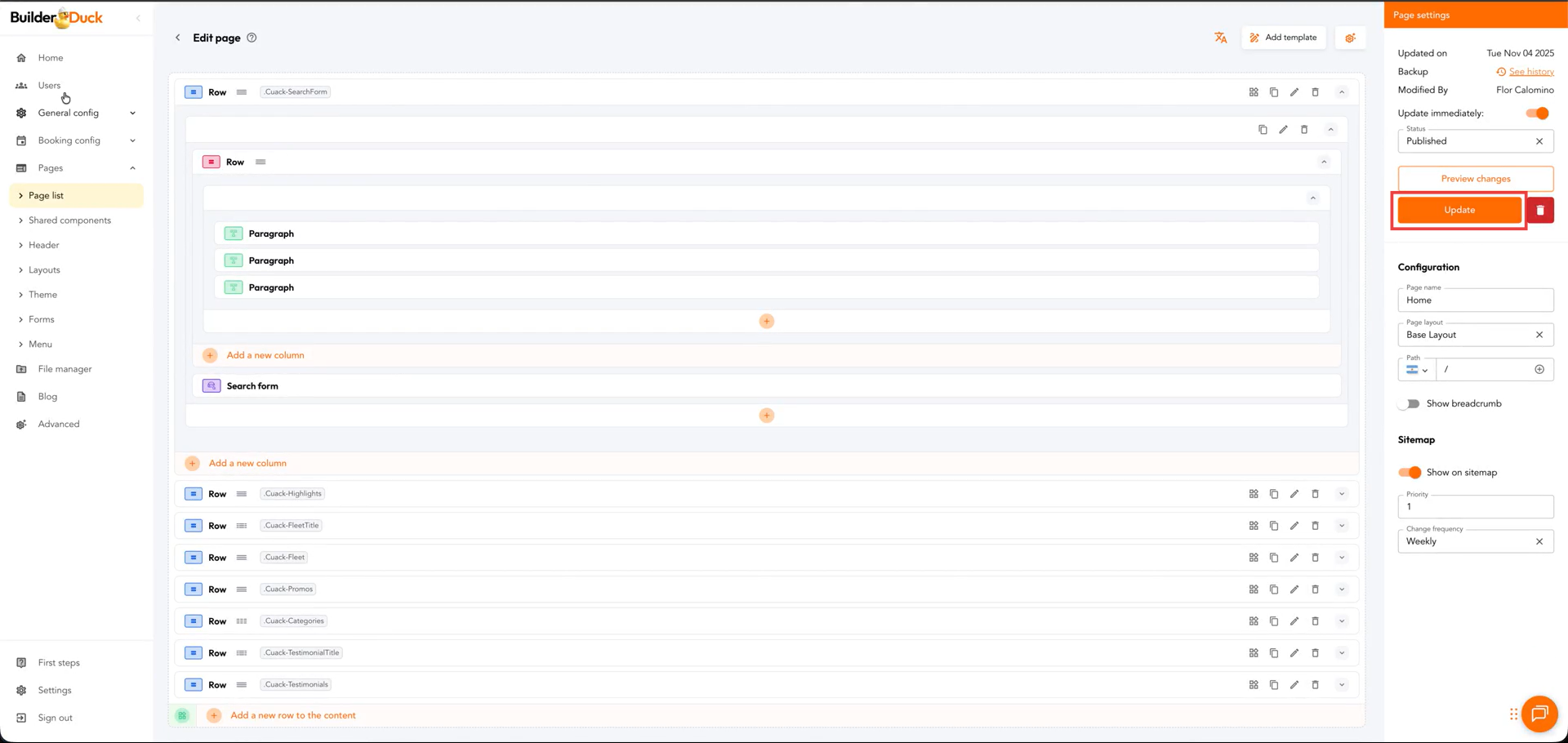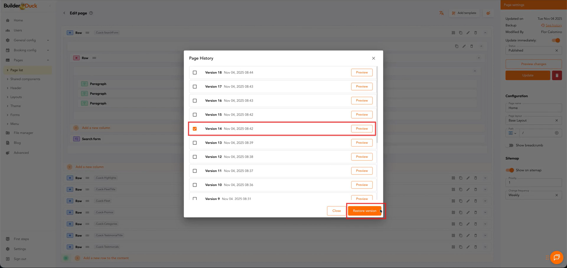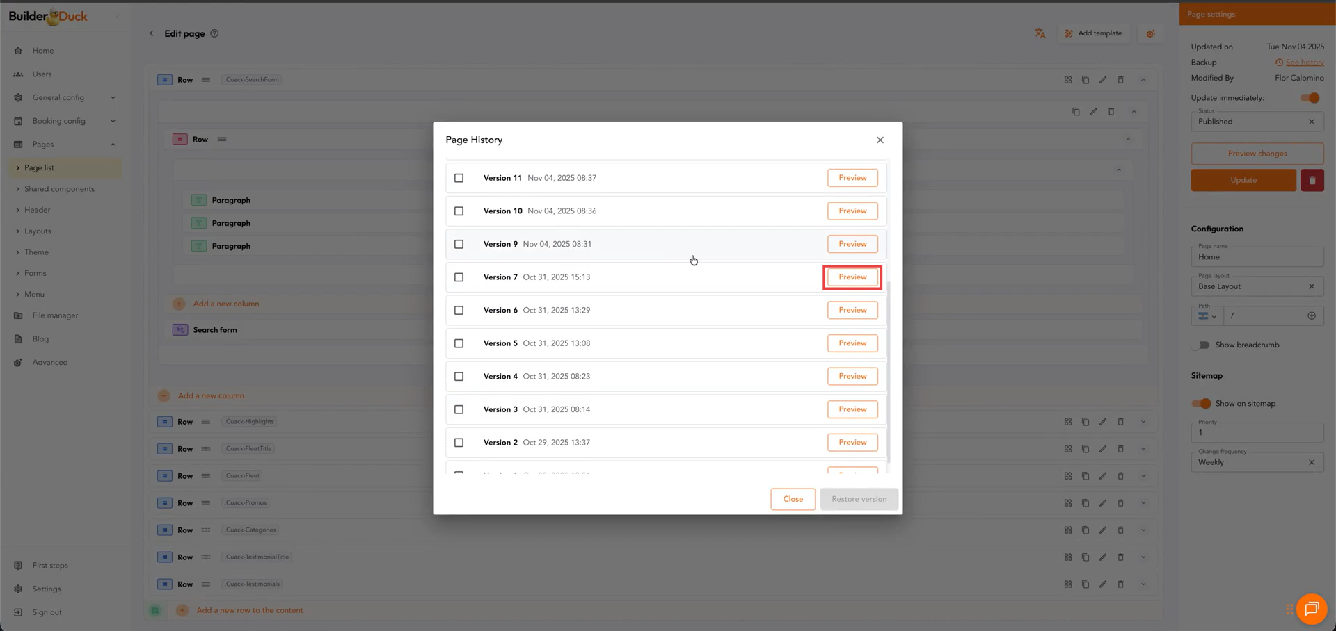 Con Builderduck puedes encontrar rápidamente el historial de cambios de tu página web y volver a opciones anteriores.